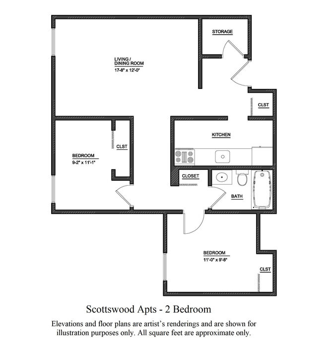 One look at our spacious floor plans and it's easy to see how Scottswood Apartments is different from other apartments for rent in West Aliquippa, PA. With a variety of floor plans to choose from, we’re certain there’s one that’s just right for you. Browse our one, two and three bedroom floor plans.